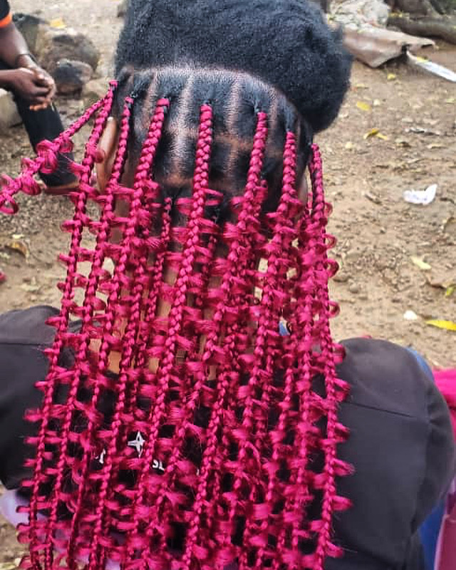 Jungle braids are such a popular and timeless style! Take a look below as they are beautifully crafted in the motherland of Sierra Leone, West Africa. Nancy Samu, a talented braider, showcases her artistry by creating stunning hairstyles right at her home in the village of Mogwembo.”